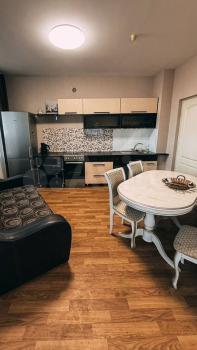 Сдаётся светлая, чистая и уютная 1комнатная квартира(45м²) в Покровке по ул. Мужества. В квартире есть всё необходимое для комфортного проживания: диван, большой шкаф, кухонный гарнитур, обеденная группа, холодильник, эл.плита, микроволновка, чайник, стиральная машина, кондиционер, шторы блэкаут. Оставляем верного друга - робот-пылесос для поддержания чистоты. По периметру дома ведётся видеонаблюдение.
