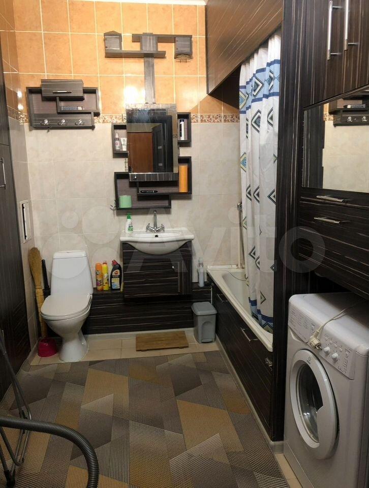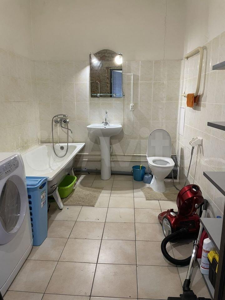 • Просторный объединённый санузел с ванной комнатой – кроме стиральной машины размещается сушилка для белья и еще остается место.