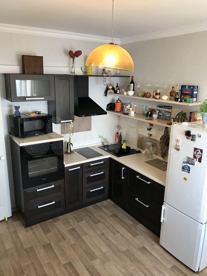 • На кухне: гарнитур, обеденная группа, холодильник, духовой шкаф, индукционная плита, вытяжка. Отдельно стоящая морозильная камера. На кухне после размещения обеденной группы остается место на установку компактного раскладного дивана, который может стать дополнительным спальным местом в квартире.