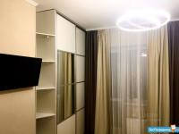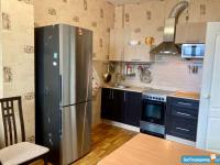 В квартире есть необходимые для комфортного проживания техника и мебель (плита с вытяжкой, холодильник, стиральная машина, чайник, телевизор, обеденная группа (стол, 4 табурета, раскладной стол-консоль, 4 стула), 2 раскладных дивана, встроенные кухня, прихожая, шкаф 4 метра, сушка для белья, утюг, гладильная доска и посуда) Все новое. Имеется встроенная сауна. Квартира после косметического ремонта (обои, ламинат, сантехника).