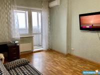 В спальне большая двухспальная ( 180/200) кровать с итальянским ортопедическим матрасом. На окнах шторы blасkоut для вашего комфортного сна. На просторной лоджии находятся стол и кресла, чтобы вы могли неспеша наслаждаться великолепными видами на город.
