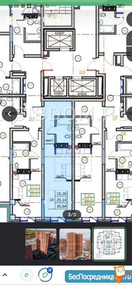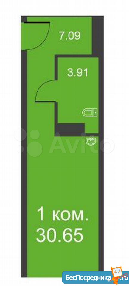 Студия в новом доме, 30кв.мет. р- н Мясокомбината , без мебели.Собственник