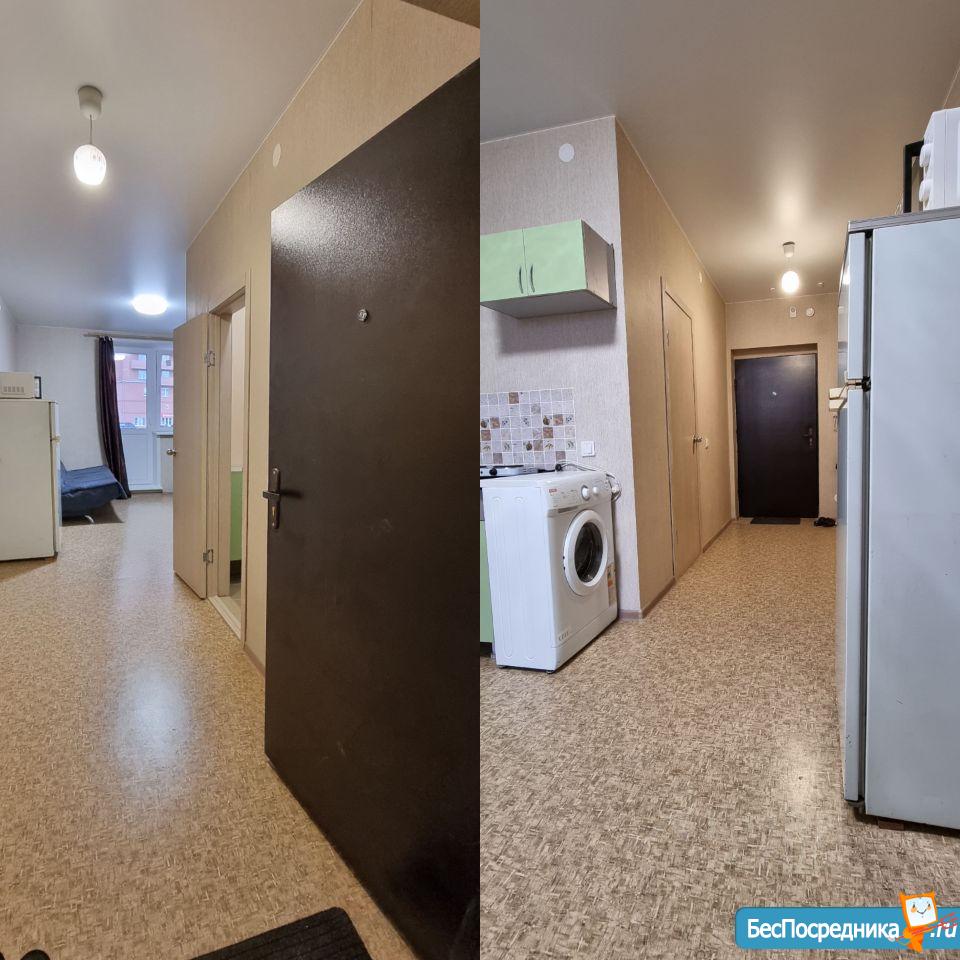 СОБСТВЕННИК!!! Сдам 1 комнатную квартиру (студию) в новом кирпичном доме (сдан в 2022г) порядочным арендаторам без маленьких детей и животных, не курящим. Есть вся необходимая новая мебель. Расположение дома не на дорогу, поэтому нет выхлопных газов от транспорта, а в квартире тихо, окна во двор. Есть балкон. Имеются парковочные места. В шаговой доступности (5 минут ходьбы) находятся супермаркеты: Пятерочка (2 магазина), Командор, Хороший, Батон, Маяк. Остановки общественного транспорта расположены в 3-х минутах ходьбы от дома, а также ж.д. платформа Мясокомбинат. До центра города 25 минут на автомобиле, 30-40 минут на общественном транспорте. При заселении оплачивается залог в размере 50% от месячной оплаты, при выселении возвращается при отсутствии претензий от собственников. Расчет наличный или безналичный по карте. Дополнительная оплата за водо и электросчетчики.