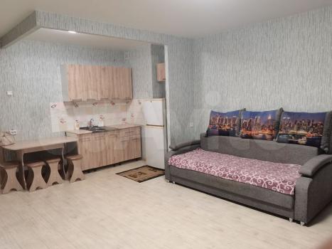Сдам студию на длительный срок. Квартира уютная, чистая. Есть холодильник, диван, стиральная машина, кухонный гарнитур, стол со стульями. Плиты нет.