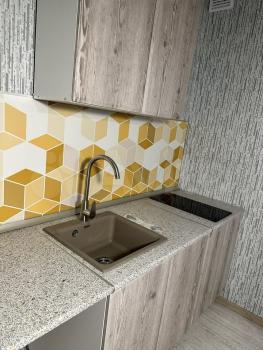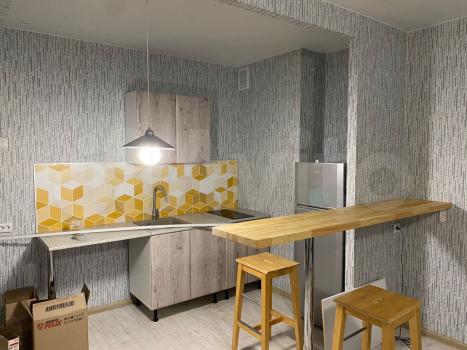 дом новый 2022 г. Панельный 17 этажный. Квартира 1 ком на 13 этаже ,балкон на две комнаты есть диван,столик журнальный ,шкаф , кухонный гарнитур ,машинка стиральная ,холодильник эл плита,ремонт .