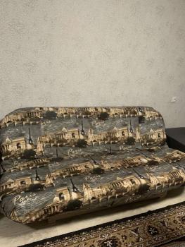 Стоит диван производства КМК, раскладывается как двухспальный с отсеками для постельного белья. Стоит холодильник LG с системой No Frost.