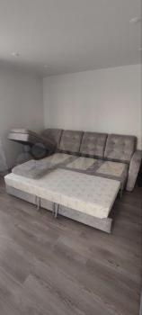 Расположение на входе справа шкаф для верхней одежд, справа зеркало.Прямо спальная в которой двухспальная кровать и зеркальный шифонер для белья и одежды.Направо зал совмещённый с кухней,где кухонный гарнитур с встроеной бытовой техникой варочная плита стеклокерамика духовка , мойка,микроволновка,холодильник и электрочайник с обеденной группой стол и 4 стула.В зале коженный диван с встроенной раскладушкой и набор напольной мебели где установлен телевизор.Налево от входа совмещённый санузел -унитаз компакт,умывальник тюльпан,душ-ванная и стиральная машина,всё новое.