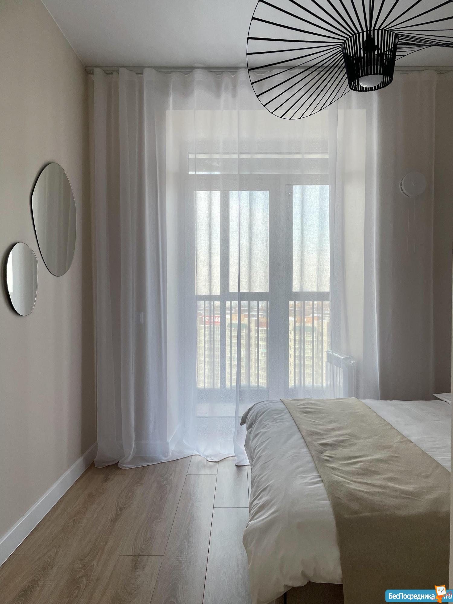▪️Спальня с встроенным стеклянным шкафом-купе, кроватью с ортопедическим матрасом, шторами блэкаут для комфортного сна и большим балконом с панорамными окнами (мест для хранения более чем предостаточно)