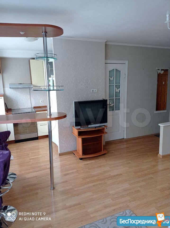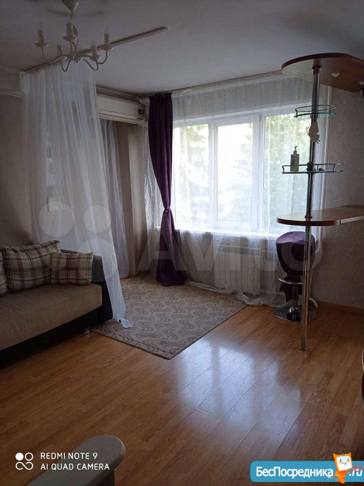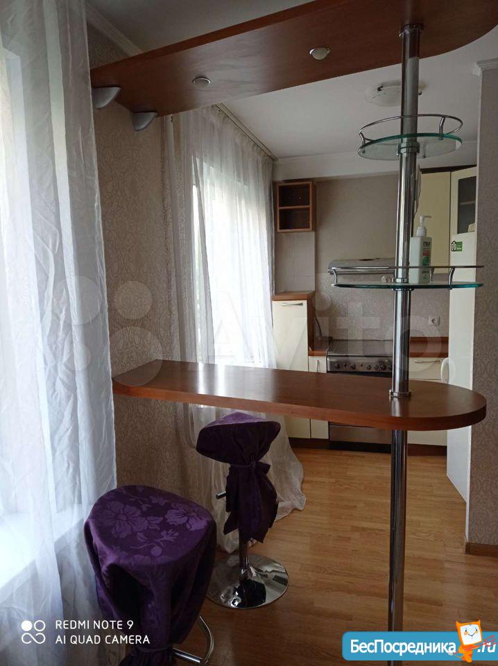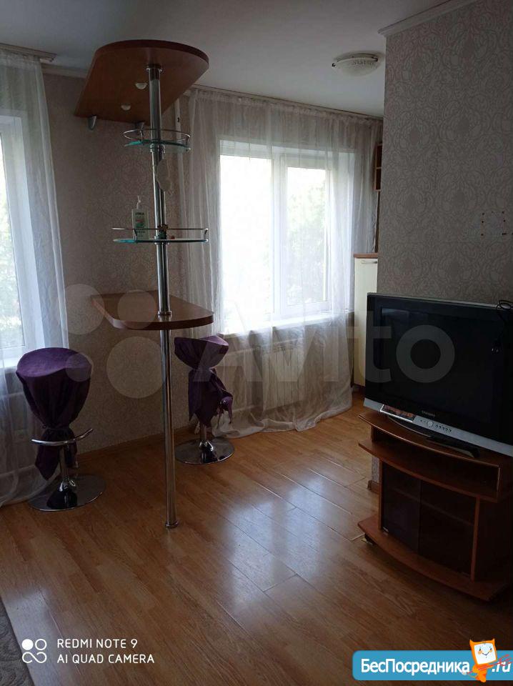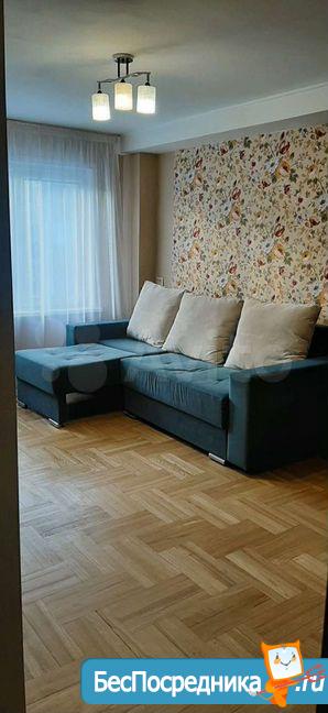Квартира в хорошем состоянии. Двухкамерный холодильник, кухонный гарнитур, кухонный стол и стулья, шкаф, комод, диван. Во двор въезд свободный. Сдается на длительный срок.
