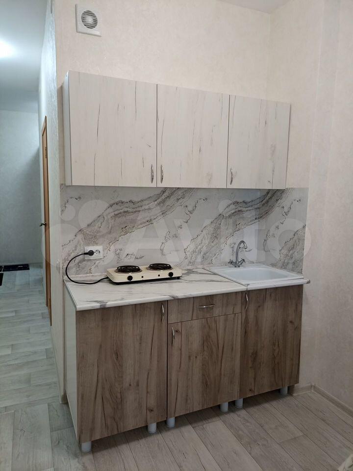 Сдаётся в аренду уютная 1 комнатная квартира- студия в новом доме. В квартире никто ни разу ещё не жил, имеется всё для комфортного проживания: спальное место- диван с выдвижным механизмом, комод и шкаф для хранения вещей, телевизор, обеденная группа, кухонный гарнитур оснащён варочной поверхностью, духовым шкафом, микроволновкой и холодильником, в ванной установлена стиральная машина. С балкона открывается красивый вид на город. Квартира очень тёплая. Вокруг дома имеется вся необходимая инфраструктура, в том числе транспортная.