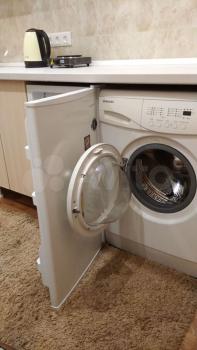 холодильник, плита, стиральная машина, телевизор.