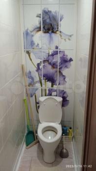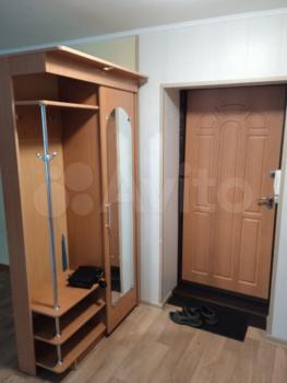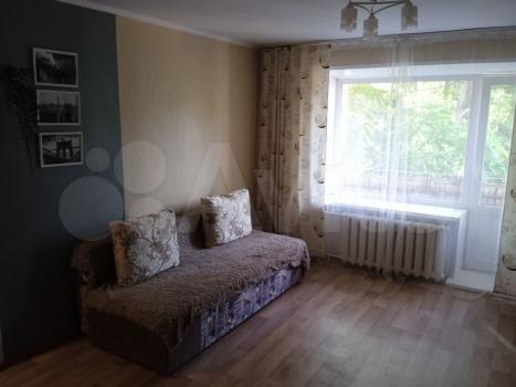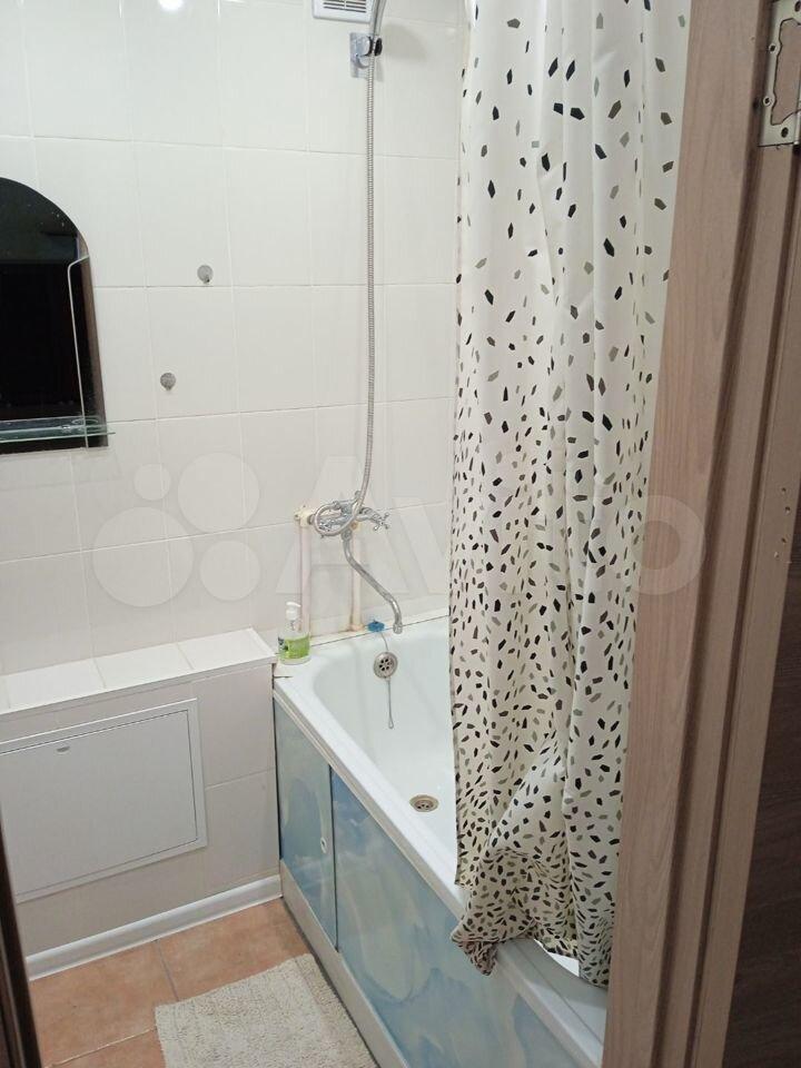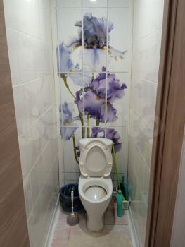 В квартире выполнен косметический ремонт. В комнате установлен вместительный шкаф-купе и диван. Санузел раздельный, оформлен плиткой.