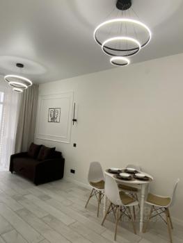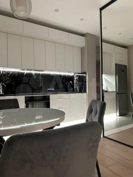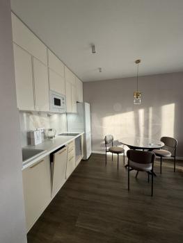 Квартира только после ремонта, выполнена из качественных материалов и укомплектована всем необходимым (даже посудой), Диван, кровать, 2тв, гардеробные, санузел, стиральная машина, посудомойка, варка, духовка, микроволновка (все встроенное), холодильник, кондиционер, подогреваемый пол. По желанию можно задекорировать интерьер под себя. Интернет, телевидение. Очень крутой вид на город, возможность вечером на балконе отдохнуть и любоваться ночными огнями