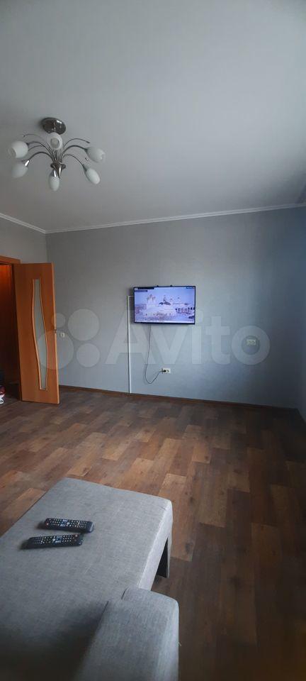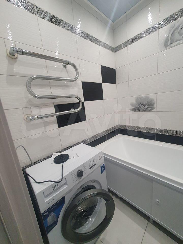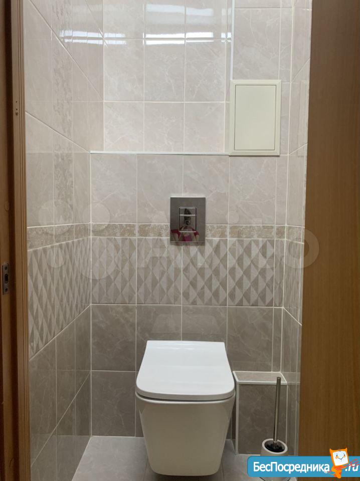В квартире выполнен евро ремонт. Просторная жилая комната оборудована шкафами и телевизором. Кухня площадью 9 м² оснащена необходимой бытовой техникой, включая холодильник и плиту. Ванная комната современная, с новой сантехникой и стильной отделкой.