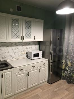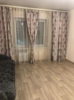 В квapтире сделан свежий ремонт. Переделана планировка - кухня-гостиная и отдельно спальня.