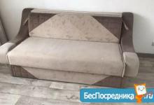Мебель: кухонный гарнитур + стол, табуреты, диван.