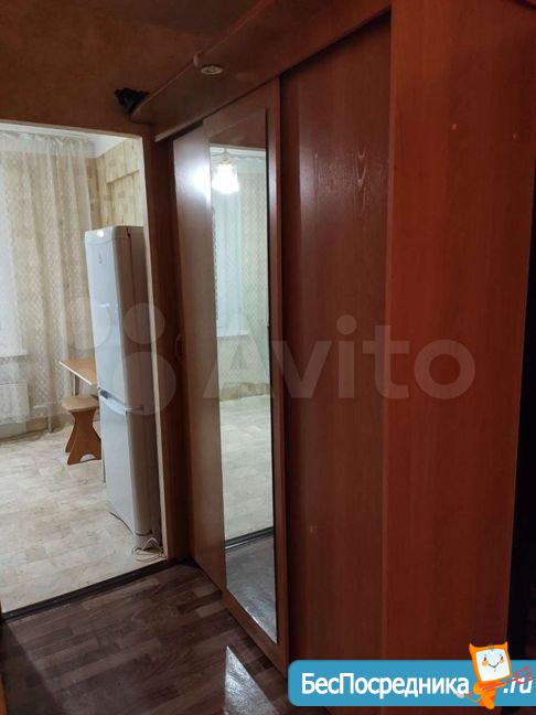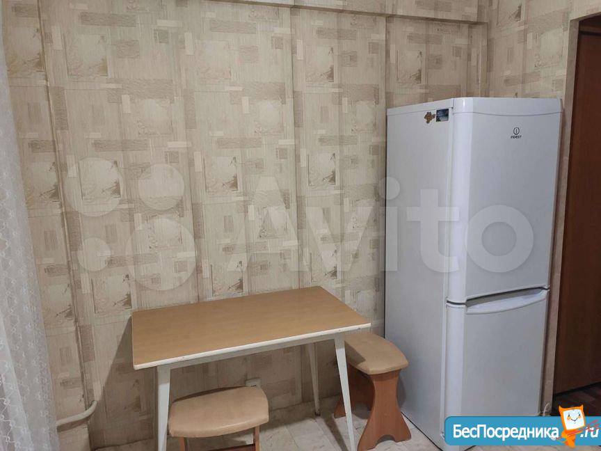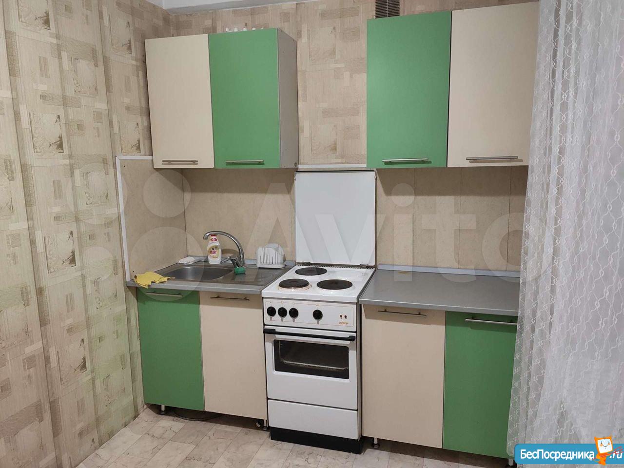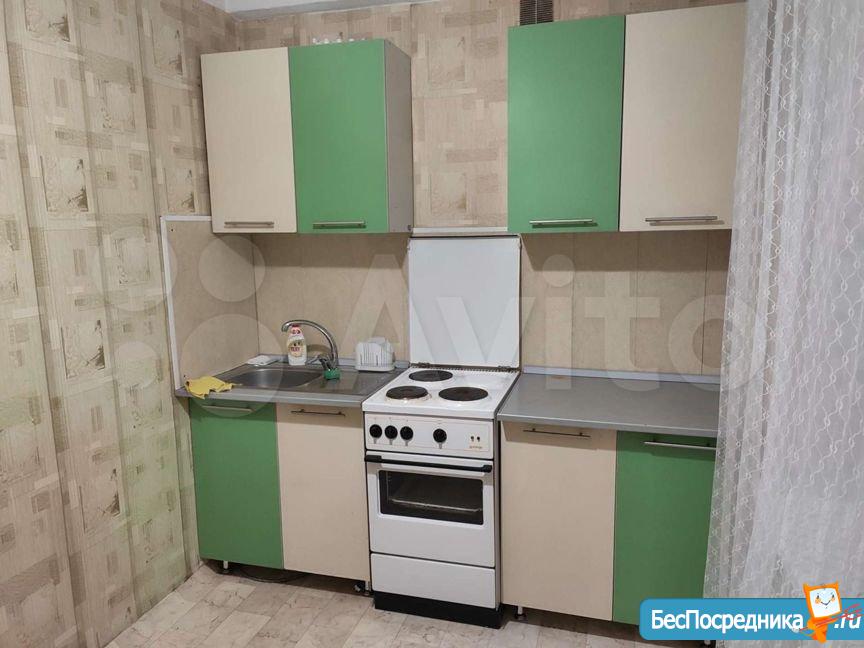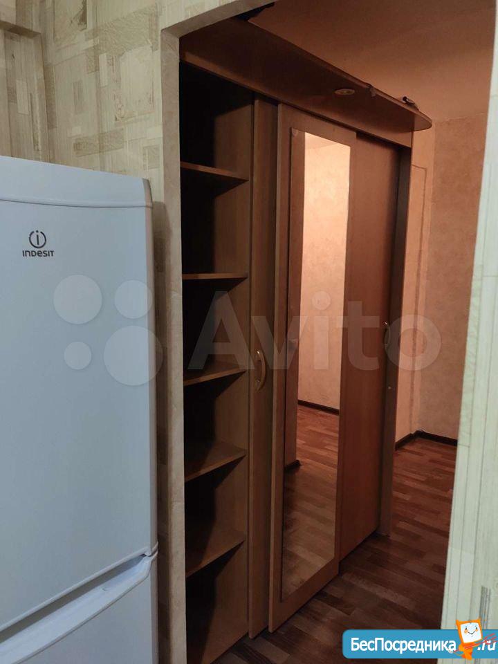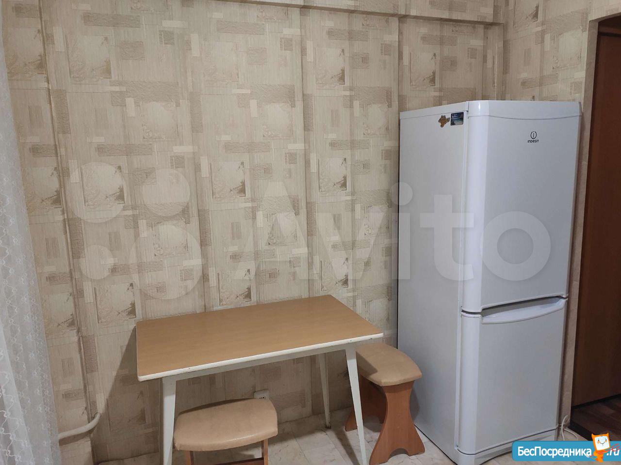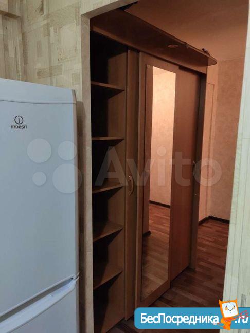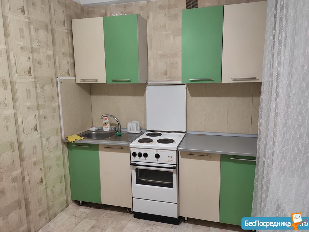 Мебель: кухонный гарнитур + стол, табуреты.В коридоре встроенный шкаф купе. В комнате раскладной диван (сфотографирован в другом месте). Техника: холодильник, стиральная машина (привезем при необходимости), плита.