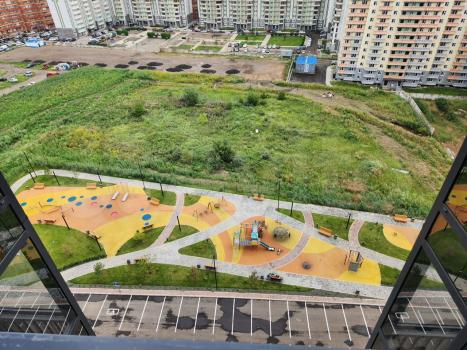 Сдам новую уютную студию в "Солнечном" ,26 квадратов с большим балконом , панорамные окна.Микрорайон Енисейская слобода, Соколовская 64!