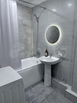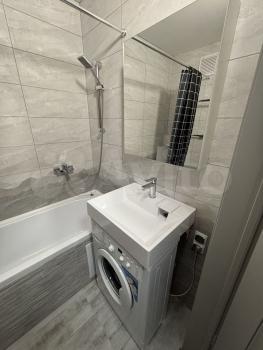 В квартире имеется удобный диван-кровать, телевизор, шкаф, кухонный гарнитур, стол, холодильник, духовая плита, чайник, стиральная машина, новая ванна, большое стильное зеркало в ванной, гардины, качественные новые двери и не только!