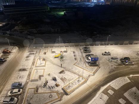 Много детских площадок, хоккейная коробка.