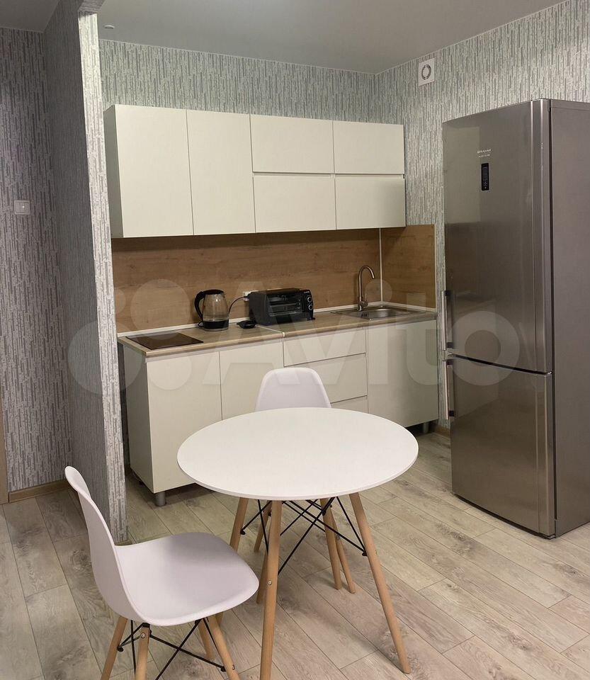 Встроенная плита, холодильник, обеденный стол