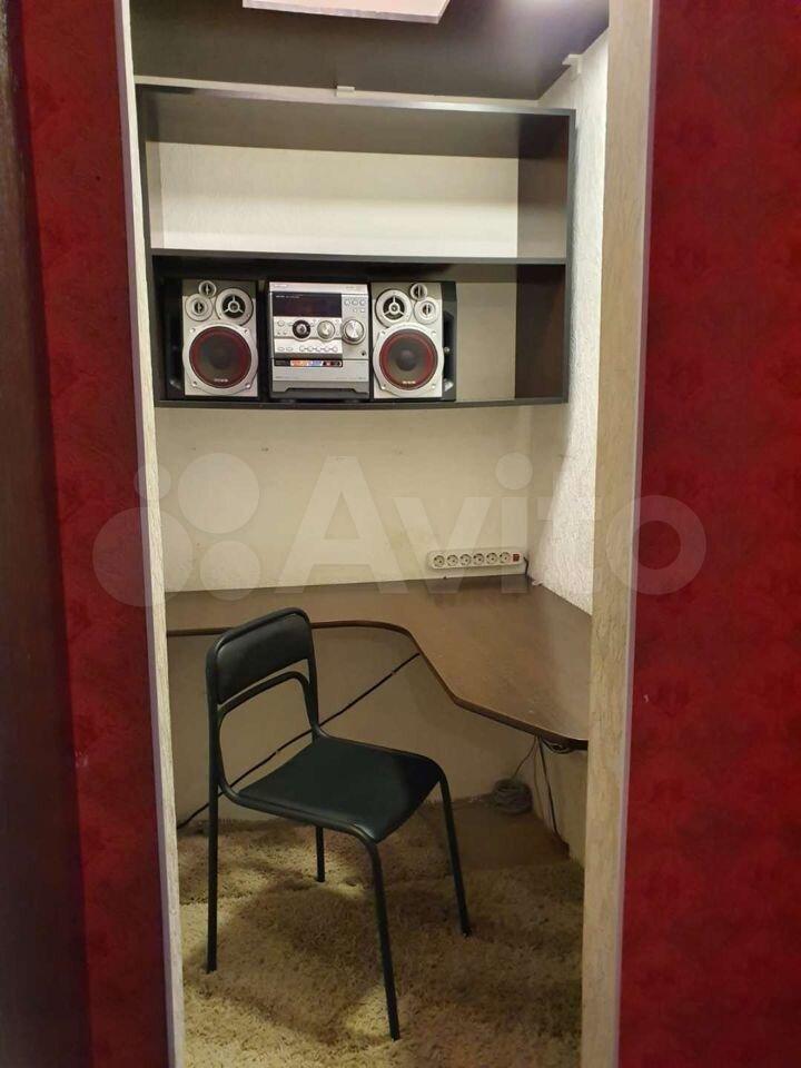А также кабинет, оборудован полками и столешницей, музыкальный центр.