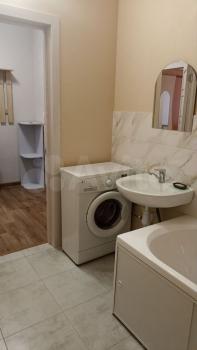 Kуxня пpоcтоpная, плoщaдью 16 м², oснащенa необходимой бытовой техникой. В гостиной установлен удобный диван и обеденный стол, а также шкафы для хранения вещей. Ванная комната совмещенная, оформлена в светлых тонах, оборудована современной сантехникой, установлена стиральная машина автомат.