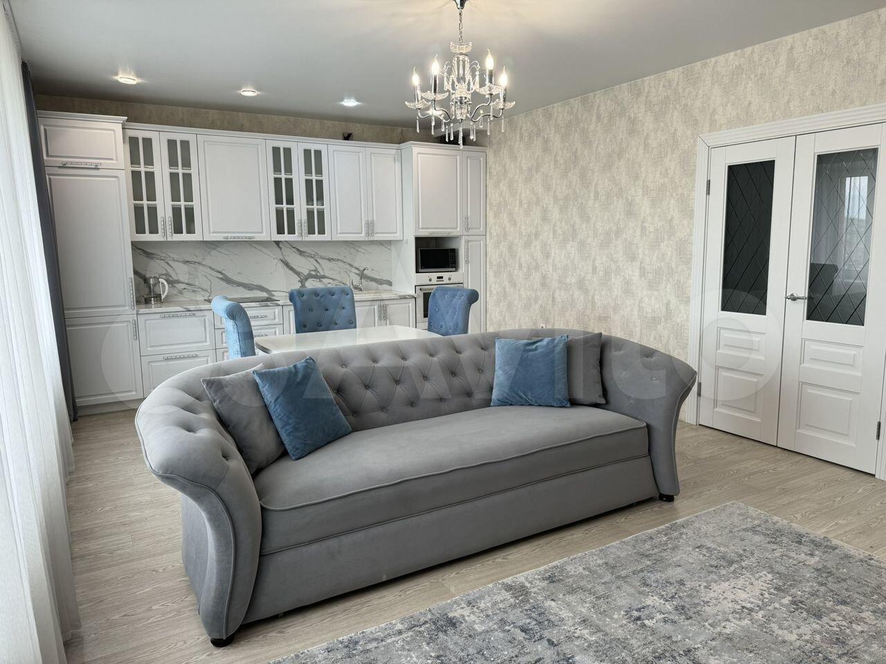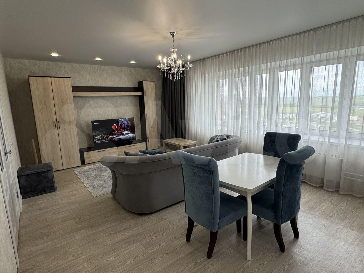 Квартира двухкомнатная (зал и кухня совмещены), с мебелью и бытовой техникой (холодильник, варочная панель, вытяжка, духовка, микроволновка, посудомоечная машина, стиральная машина, бризер, интернет).