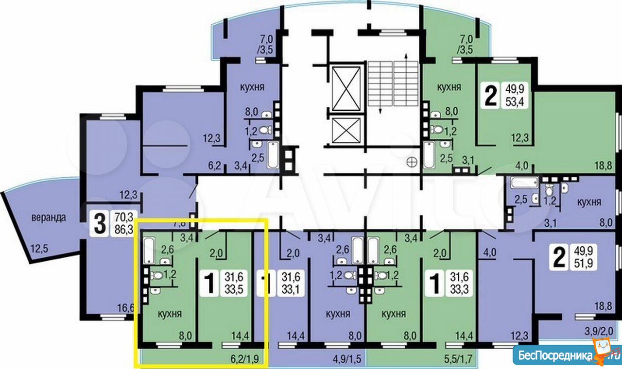Квартира, 1 комната, 33 м2