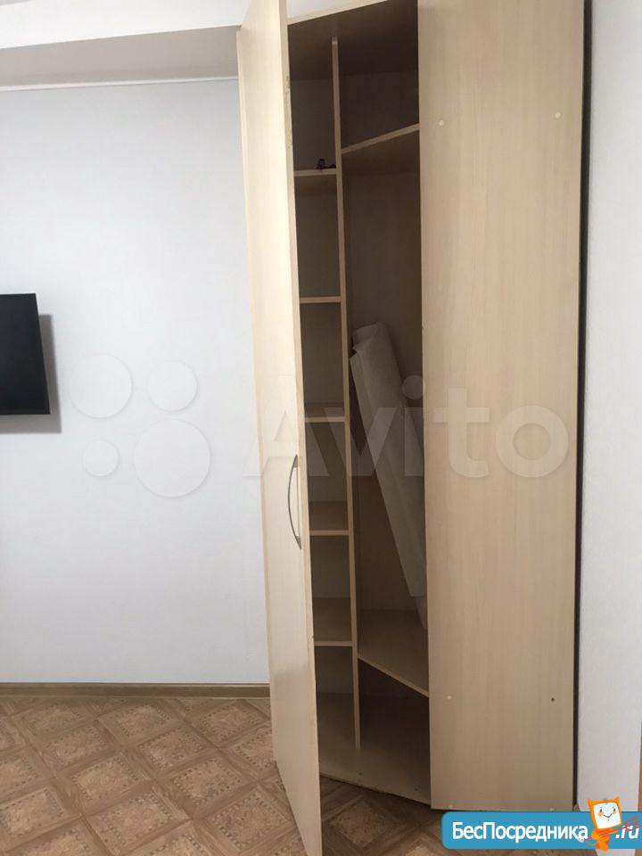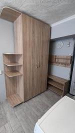 Из мебели - всё что на фото, плюс будет новый стол со стульями. Из техники: стиральная машина, холодильник, микроволновка, чайник, плитка однокомфорочная. Есть посуда. Абсолютно новый диван еврокнижка с ровным спальным местом.