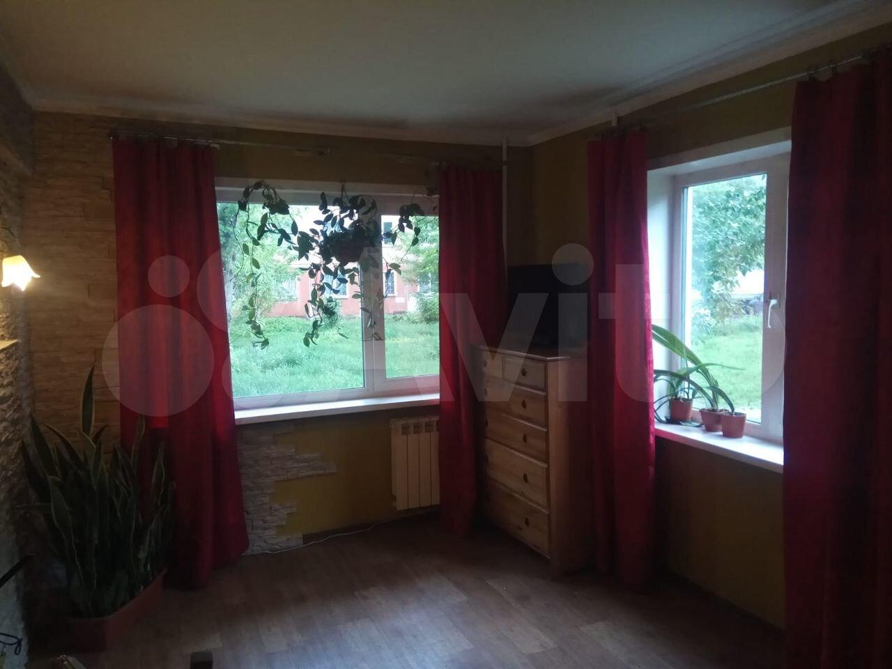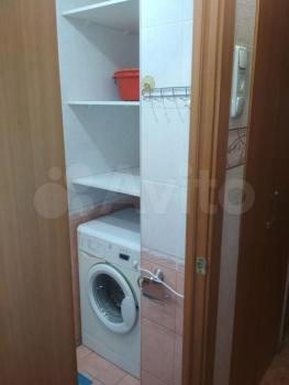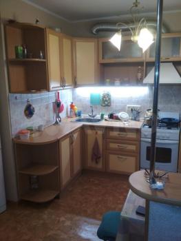 Квартира светлая, зелёный двор, с парковкой нет проблем. Спокойные соседи, подъезд чистый. Состояние хорошее. Стена между кухней и комнатой снесена (они образуют единое пространство, см. фото), на полу кафельная плитка, в другой комнате линолеум. Плита газовая. Из мебели: диван, холодильник, стиральная машина, туалетный столик, стол кухонный, комод.