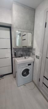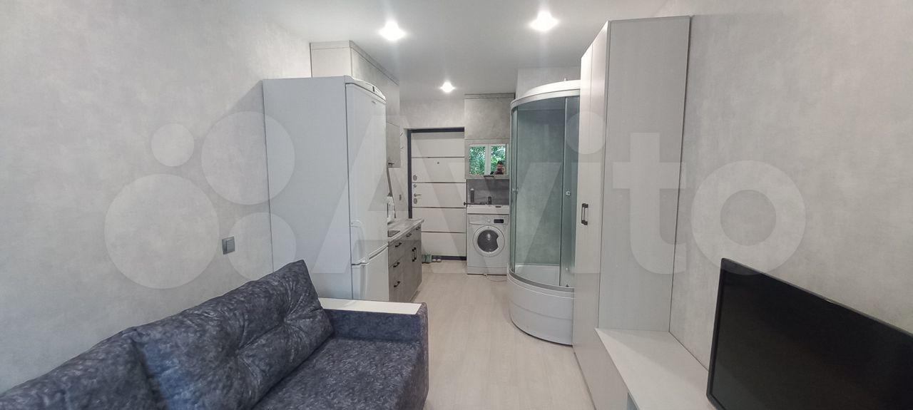 Санузел свой, в квартире! В кухонной зоне раковина и навесная полочка. Также имеется стиральная машинка автомат. На данный момент из мебели есть диван, холодильник, «временный» шкаф, тумбочка. В счет аренды по договорённости можно приобрести плиту, шкаф, кухонный гарнитур. Проводка новая.