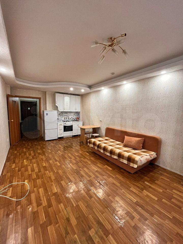 Сдается 1-комнатная квартира-студия на длительный срок. Мебель и техника на фото. Имеется большой застекленный балкон. Арендная плата 14000 плюс счетчики. Залог 3000.