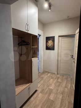 Большая комната включает кухонную зону, гостевой диван, стол со стульями. в которой хватит места для двух человек, Общая площадь квартиры 41,1м2 включая просторную лоджию 3,3м2. Совмещенный сан. узел в кафельной плитке. В спальной комнате стоит вместительный распашной шкаф, а также есть место для спальной кровати или дивана. В прихожей, за шторой расположены кладовка. Квартира идеально подойдет, семье с ребенком или молодой паре без вредных привычек. Соседи отличные, тихие, спокойные.