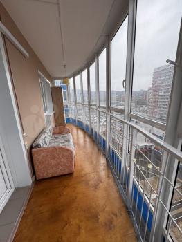 Кухня оборудована необходимой техникой, включая плиту и микроволновку. Просторный балкон застеклен и выходит на живописный вид из окон. В совмещенном санузле установлена современная сантехника.