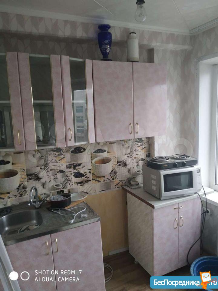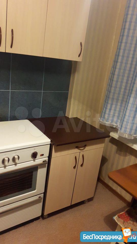 В квартире есть: диван, журнальный столик, шкаф, тумба под тв, телевизор, холодильник, стиралка, стеллаж под посуду, стол+табуретки, холодильник, электро плита. Балкон застеклен.