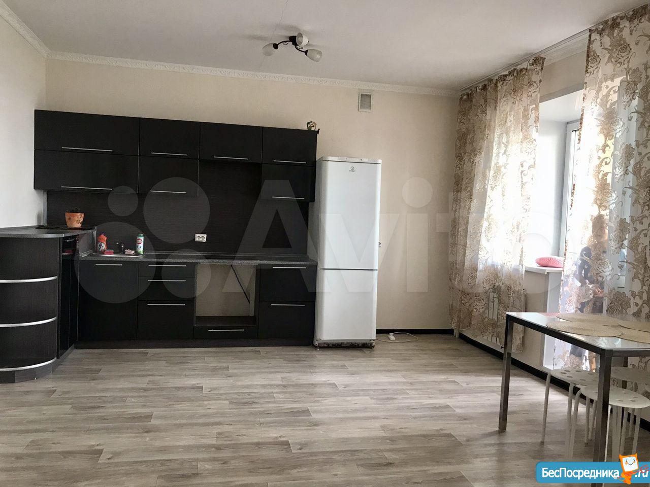 Сдам квартиру-студию на длительный срок. Из мебели: кухня, холодильник, шкаф, стиралка.