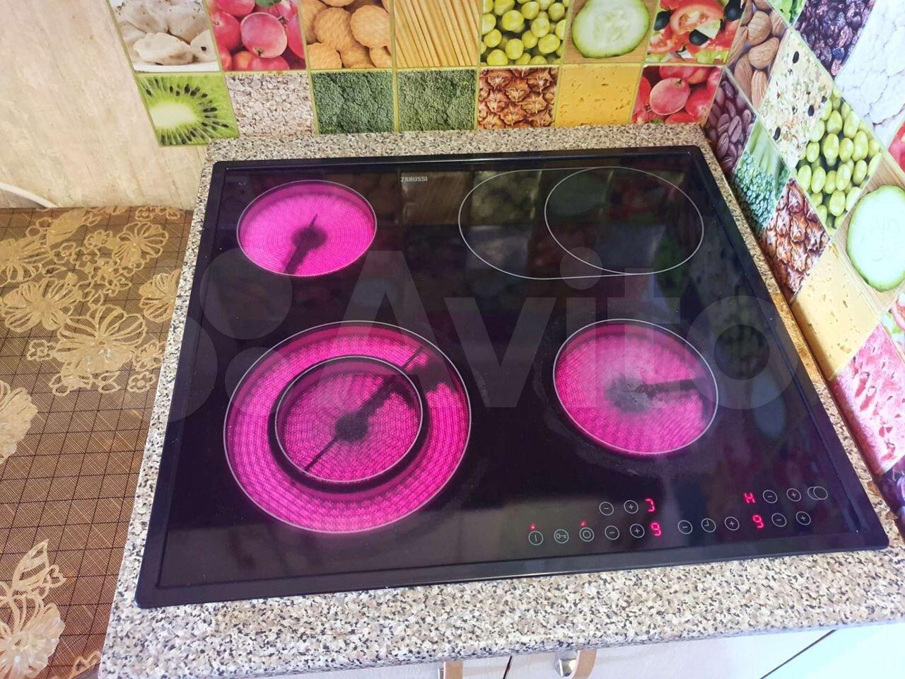 холодильник, плита, микроволновка, стиральная машина, телевизор.