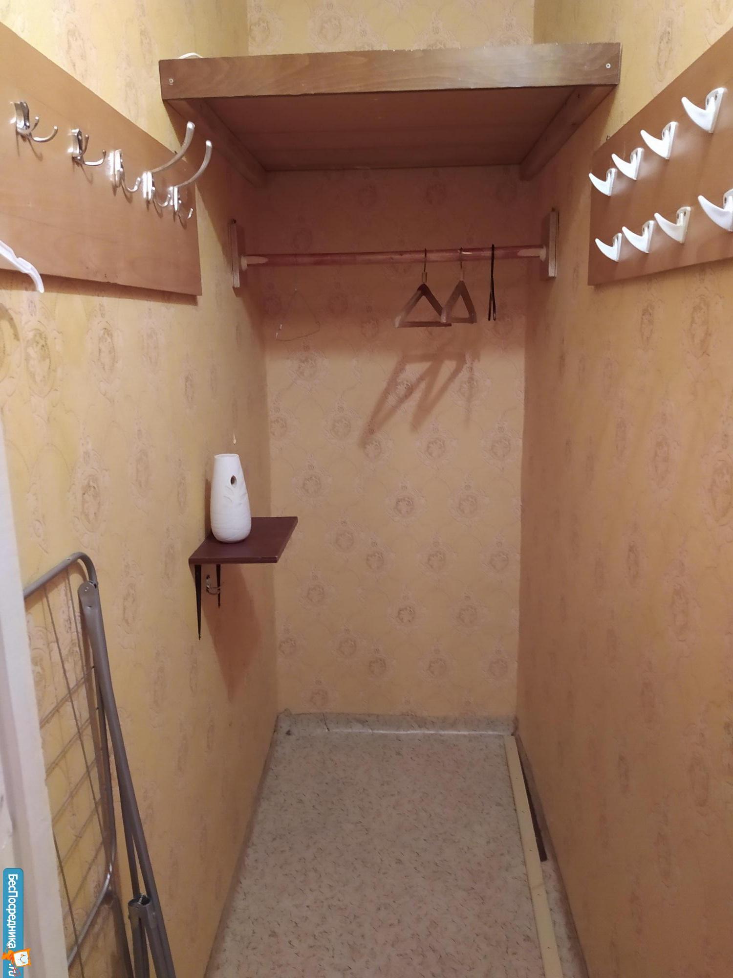 В квартире на кухне холодильник, кухонный гарнитур, стол,стулья.Есть большая кладовка.В коридоре есть шкаф для одежды. Красивый вид из окна.В зале только раскладывающееся кресло-софа.