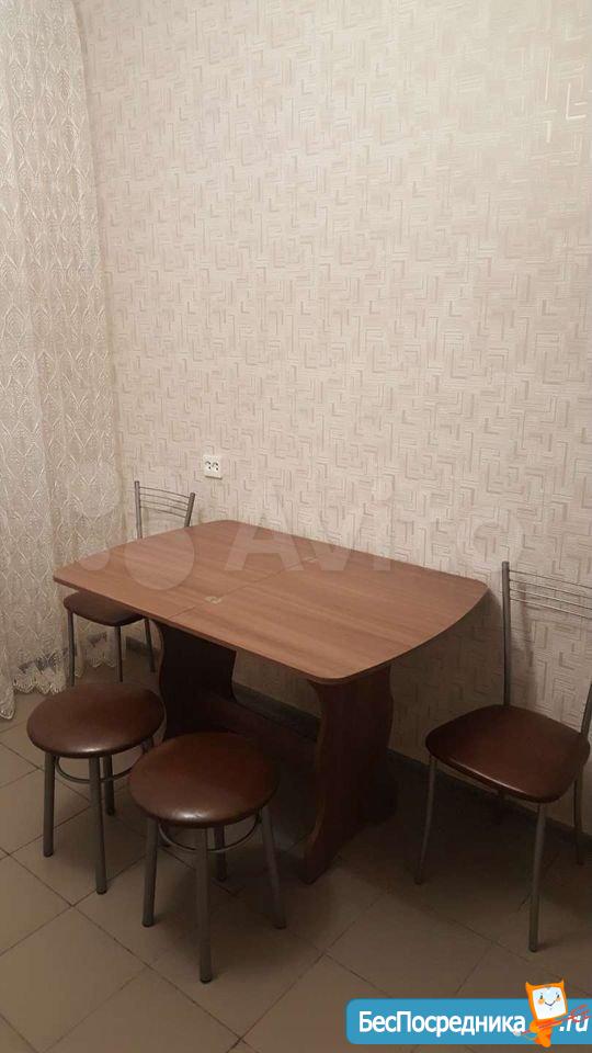 В квартире есть диван, 2 шкафа под одежду, кухонный гарнитур, стол, стулья, чайник, холодильник.