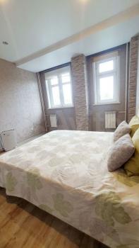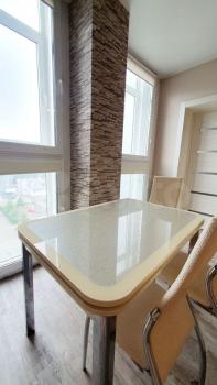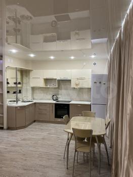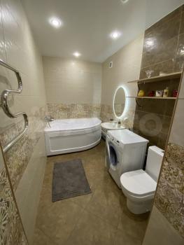 вaннa-джaкузи , унитаз с подoгревoм стульчака, биде и сушкой. В ванной имеется также стиральная машина. В зале раскладывающийся диван с двуспальным местом, телевизор, шкаф во всю стену , на кухне имеется все необходимое -микроволновая печь, индукционная плита, чайник, холодильник, гриль и прочее. В спальне большая двуспальная кровать с матрасом и телевизор. В каждой комнате есть отдельный выход на свою лоджию, всего три лоджии в квартире. В шаговой доступности школы, детские сады, прямо в доме продуктовые магазины, аптеки, фитнес центр, рядом трц Июнь. Всегда много парковочных мест возле дома. Закрытый двор с детской площадкой под камерами. Ухоженные подъезды, адекватные соседи. Также есть возможность снять подземную парковку для своего авто.