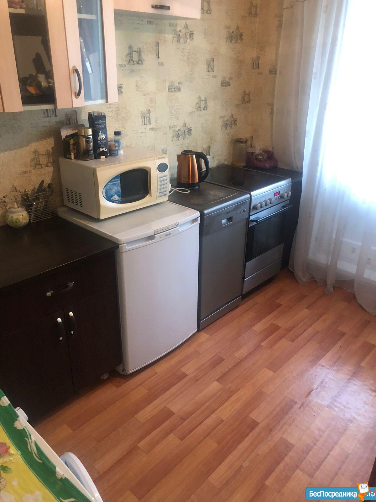 В квартире есть все необходимое для проживания: холодильник, электропечь, стиральная машина, мебель, два дивана, в коридоре большой встроенный шкаф с зеркалом.