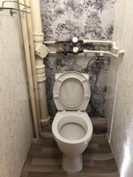 Санузел раздельный, выполнен в светлых тонах.