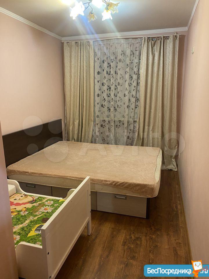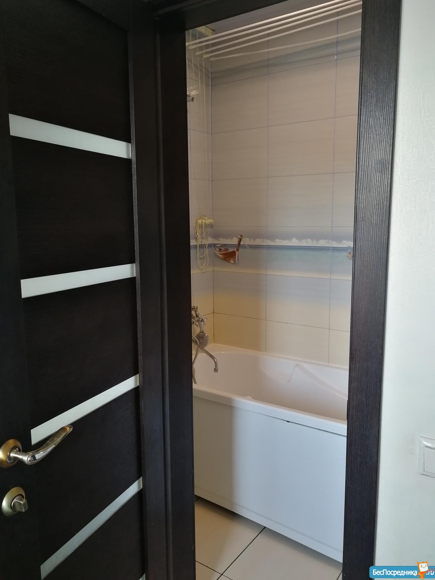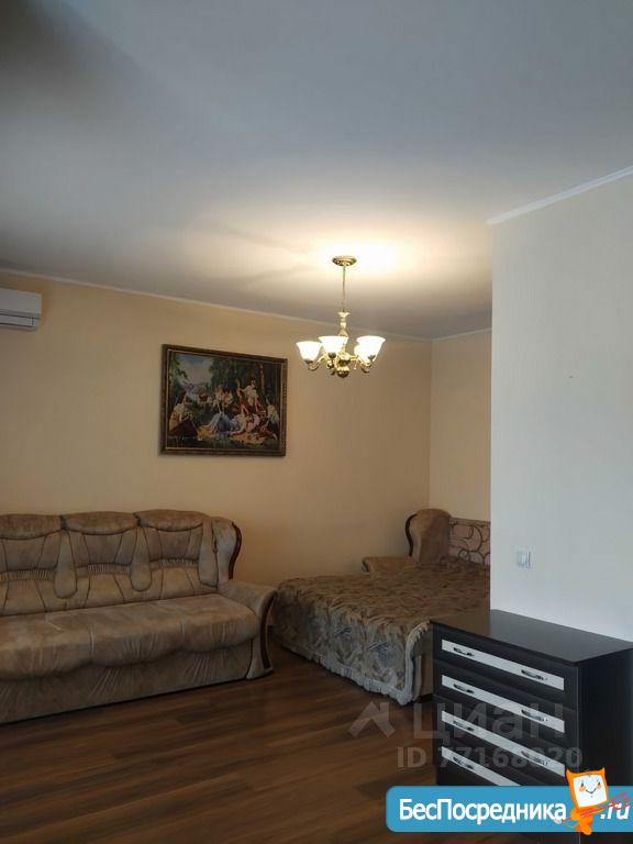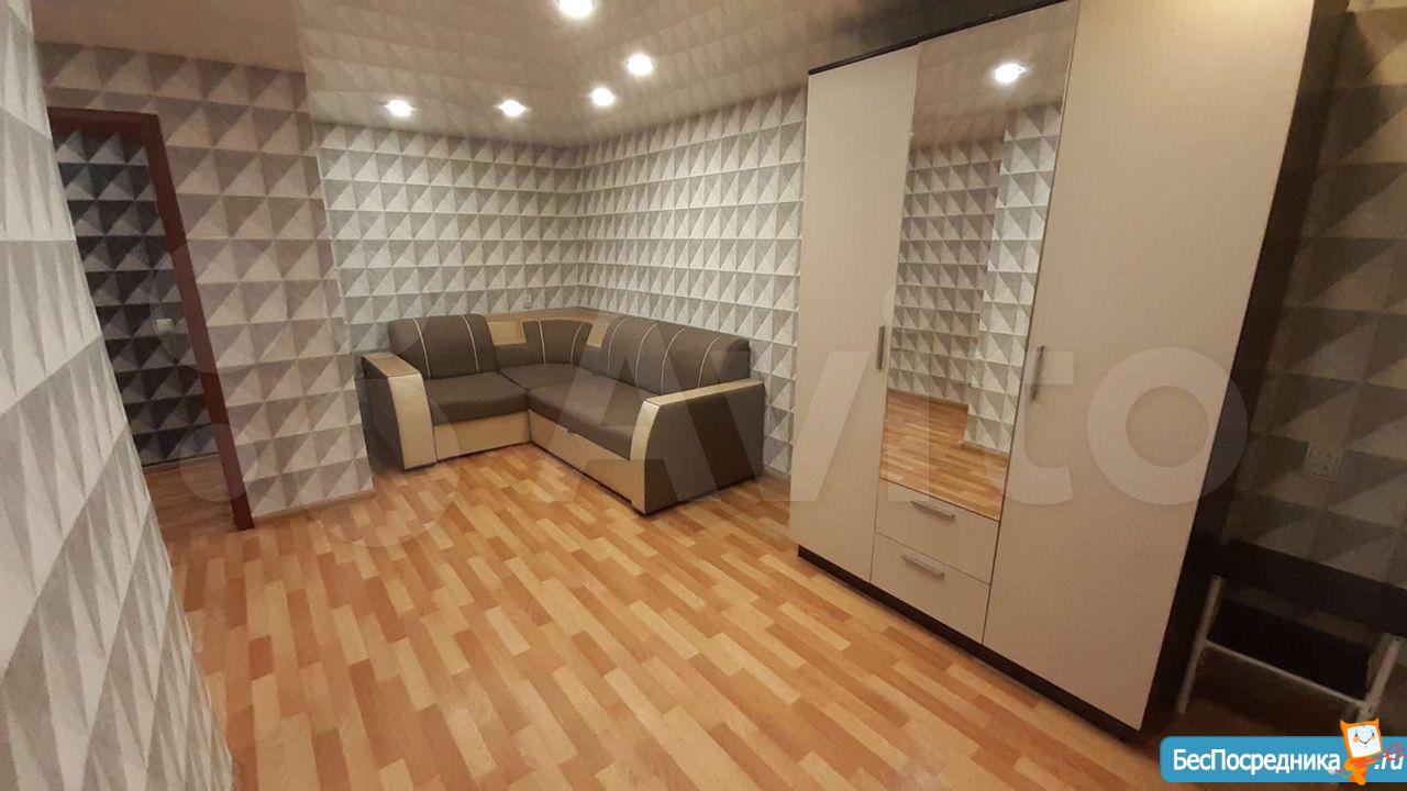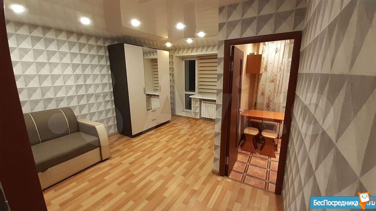 Квартира полностью мебелирована. В комнате 2 плательных шкафа, телевизор, кондиционер,журнальный столик,диван. В коридоре прихожая. В ванной стиральная машина автомат. На кухне кухонный гарнитур, вытяжка, электроплита, холодильник с отдельной морозильной камерой. Квартира теплая. Рядом две остановки общественного транспорта,много магазинов и кафе. Во дворе установлен шлагбаум- пульт прилагается. Собственник, только долгосрочно.