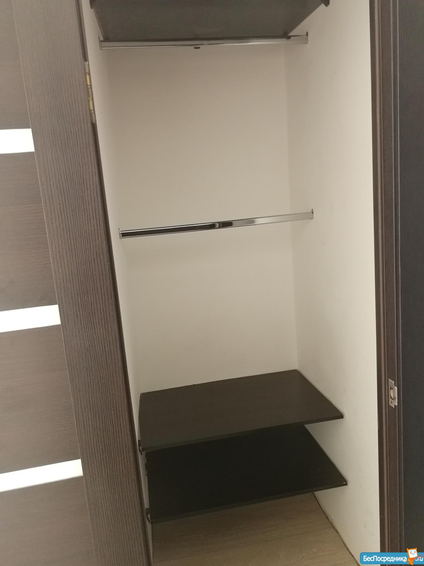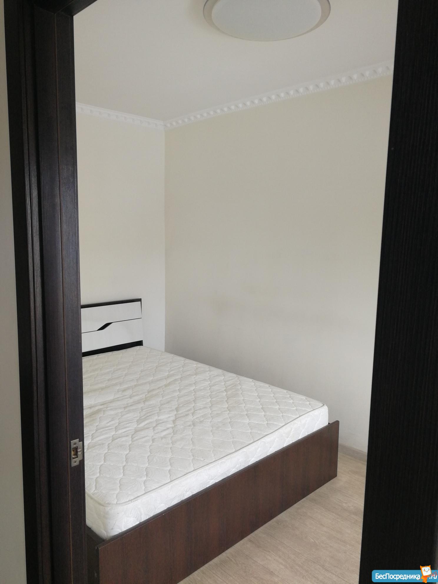 В квартире новая двуспальная кровать, новый шкаф, новый холодильник, новая стиральная машина, новая входная дверь.