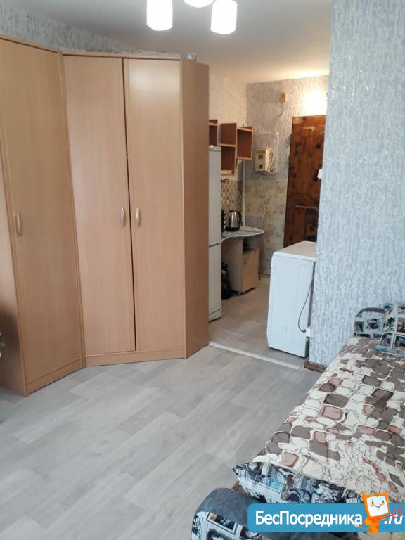 Собственник. Сдам гостинку 18кв в отличном состоянии, 5 этаж, с мебелью, холодильник, стиральная машина, плита с духовкой, рядом остановка, магазины. Без животных. На длительный срок. Залог 4000руб.
