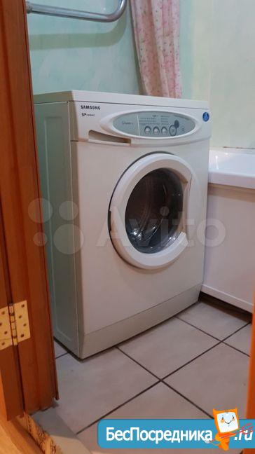 В квартире (кухня -плита, холодильник, кух.уголок,стол,стулья),ванна -стиральная машина.