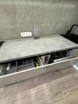 Из техники - холодильник, плита, духовка, вытяжка, посудомойка, микроволновка, телевизор, кондиционер, водонагреватель.
