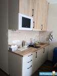 санузел - совмещённый, мебель - кухня, хранение одежды, спальные места, холодильник, плита, микроволновка, стиральная машина, телевизор.