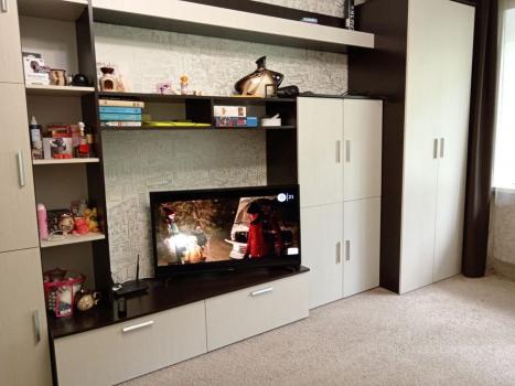 В комнате и в коридоре удобные встроенные шкафы.